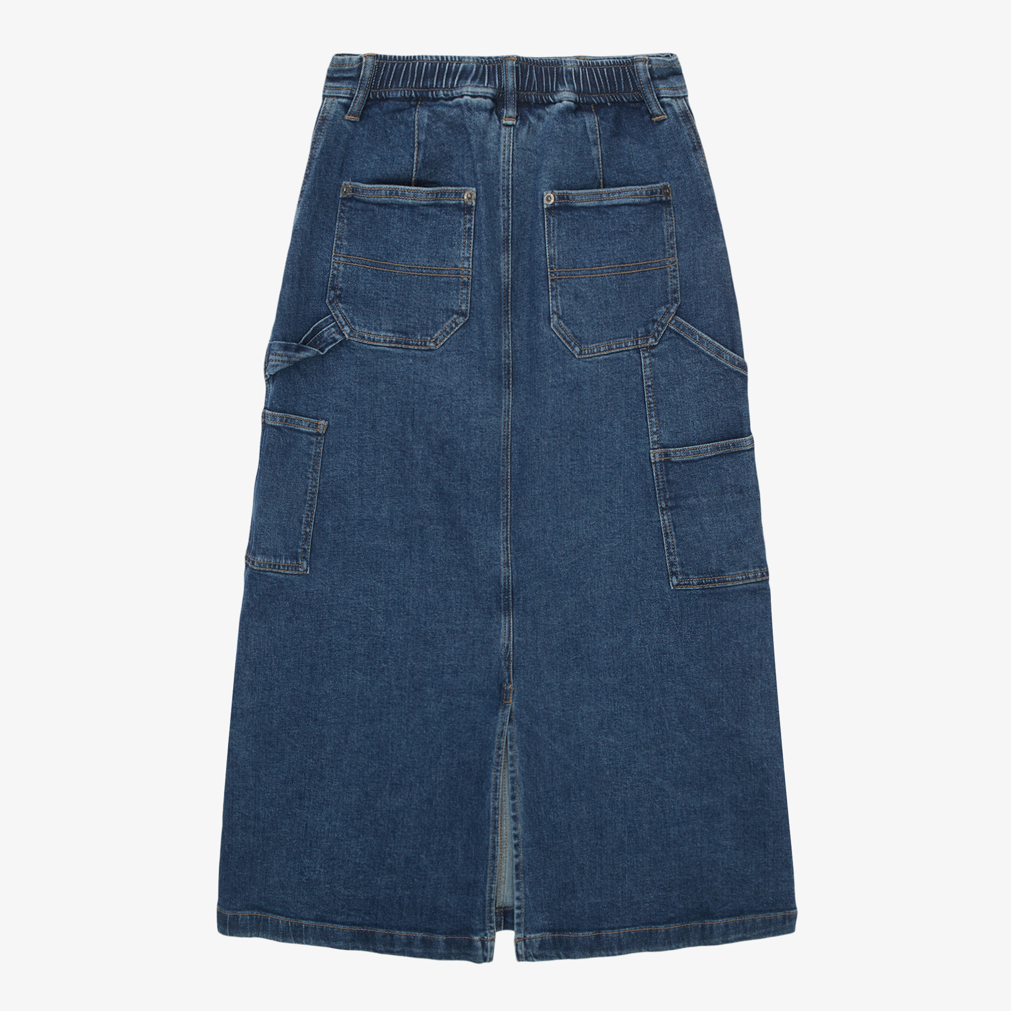 미디 기장의 A라인 실루엣이 돋보이는 데님 스커트입니다.