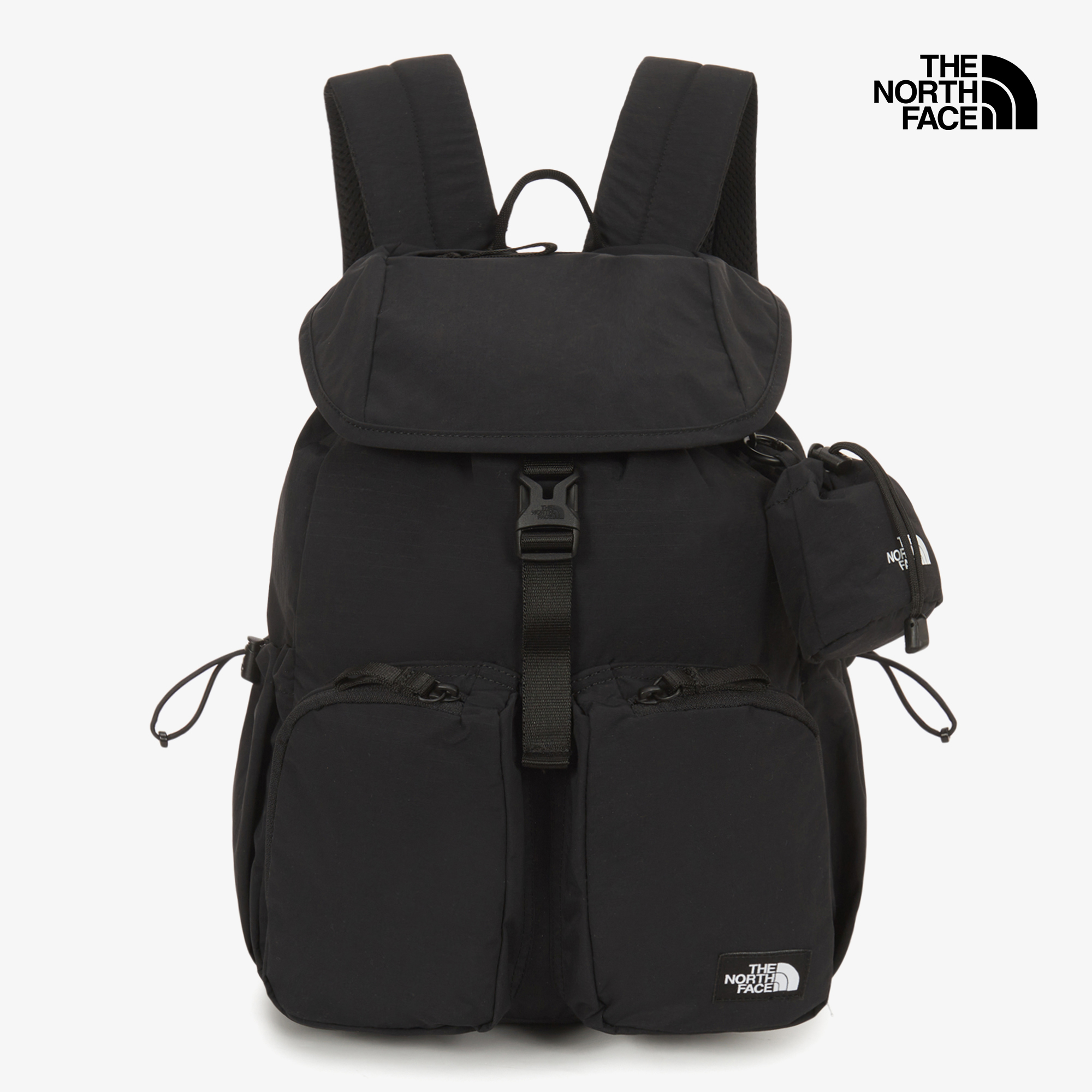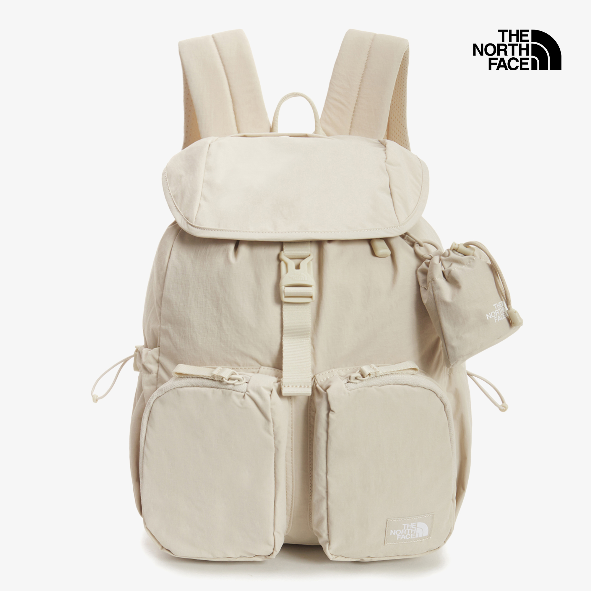 플랩 상단 지퍼 포켓, 전면 투포켓, 양쪽 조임 포켓으로 다양한 소지품을 분리·수납할 수 있습니다.